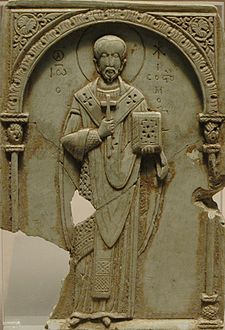 Foto: Arcivescovo Giovanni Crisostomo, (344/354  Antiochia-407 Comana,Pontica), bassorilievo bizantino del XI secolo, Museo Louvre di Parigi