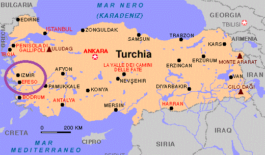 Foto: La posizione geografica della città di Efeso, luogo del tempio di Artemide