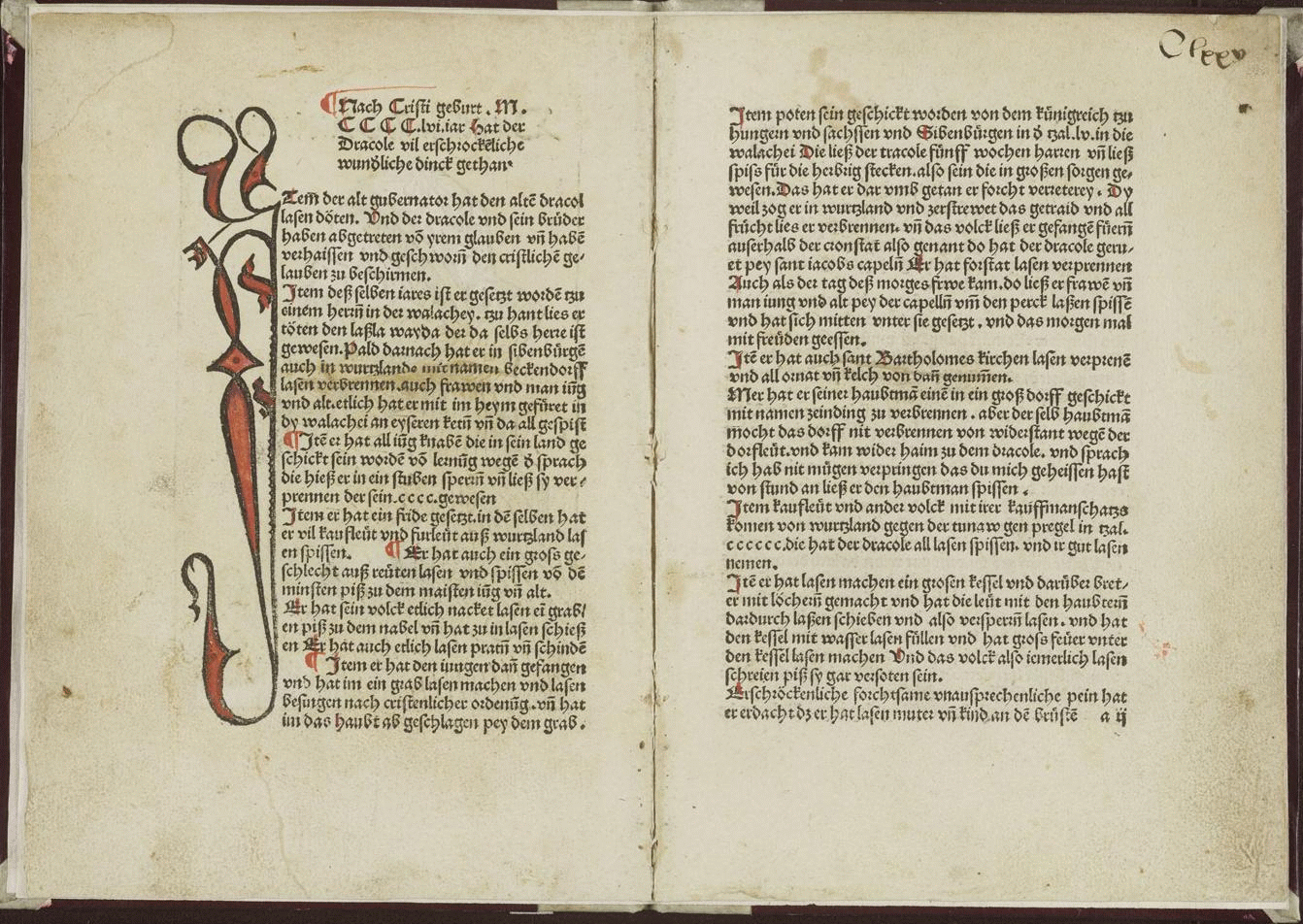 Nel 1488 a Norimberga in Germania, venne pubblicato un manoscritto, intitolato “Storie tedesche del voievoda Dracula”, che si apre cosi: “ Ecco la storia crudele e terribile di un uomo selvaggio e assetato di sangue, Dracula il voievoda. Da come impalò e arrosti gli uomini e li fece a pezzi come cavoli. Arrosti anche bambini e costrinse le madri a mangiarli. Molte altre cose sono scritte in questo libello, anche sulla terra su cui regnò.