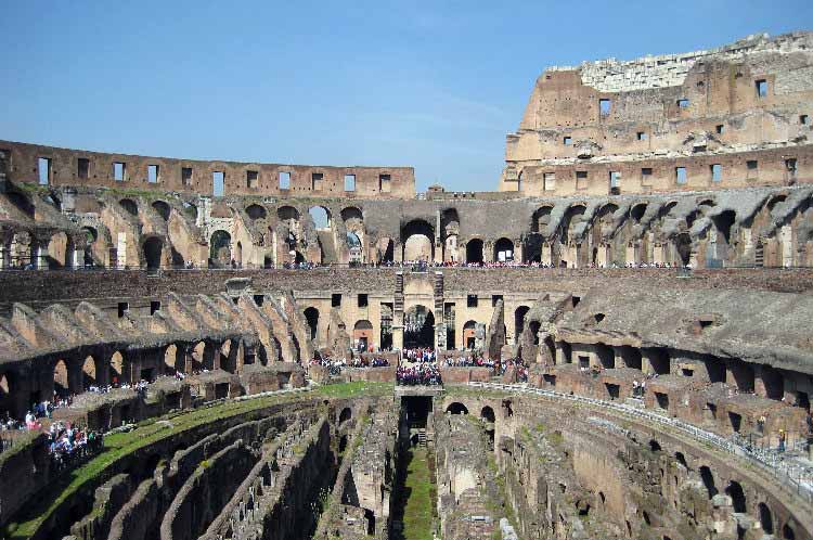 Originariamente conosciuto come Anfiteatro Flavio o semplicemente come Amphitheatrum, il Colosseum è la più grande arena del mondo. Situato nel centro della città di Roma,è in grado di ospitare 50.000-80.000 persone. La costruzione venne iniziata da Vespasiano nel 72 d.C. e inaugurata da Tito nell’ 80. Il nome “Colosseum” che deriva dalla statua del Colosso di Nerone si diffuse solo nel Medioevo. L’edificio divenne simbolo della città imperiale,definendo anche un modello per lo svago del popolo. Oggi è un simbolo della città di Roma nonché una delle sue maggiori attrazioni turistiche.