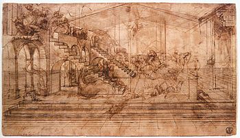 Leonardo da Vinci, Adorazione dei Magi, 1481-1482, olio su tavola,Galleria degli Uffizi, Firenze.
