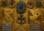 E’ composta di 25 lamine d’oro su tavola di noce, eleganti rabeschi, 16 smalti Cloisonneé, 17 rosoncini in filigrana con 94 perle e 97 gemme (tra cui alcuni cammei) e 4 bassorilievi a sbalzo con i simboli degli Evangelisti. Sulle placche ovali di smalto, al centro dei quattro lati, sono raffigurati in alto il Cristo Pantocratore, in basso la Visitazione, a sinistra l’Angelo e a destra la Madonna (l’Annunciazione). Al centro si trova uno scudo ovale con una croce greca gemmata in filigrana.