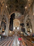 Il Santuario di Tirano sorge proprio nel punto dove, il 29 settembre 1504, festa di S. Michele, la Vergine Maria apparve al beato Mario Homodei, salutandolo con le parole: “Bene avrai” e chiedendo espressamente la costruzione di un tempio in suo onore con la promessa di salute spirituale e corporale a chi l’avesse invocata. L’immediato consenso creatosi intorno all’apparizione indusse le autorità di Tirano a chiedere alla Curia di Como l’autorizzazione per la costruzione del santuario. Questa fu subito concessa. Infatti il 10 ottobre 1504, undici giorni dopo l’evento, Guglielmo Cittadini, vicario del vescovo di Como, cardinale Antonio Trivulzio, autorizzava, con il permesso di celebrare la messa, la costruzione di una basilicam seu ecclesiam in onore della Vergine, sul luogo dell’Apparizione, dove già era stata eretta con frenetico zelo una cappella. Neppure sei mesi dopo l’apparizione, esattamente il 25 marzo 1505, fu posta la prima pietra. Presunti architetti i fratelli Rodari, Tommaso, Giacomo, Donato e Bernardino, originari di Maroggia sul lago di Lugano, nel Canton Ticino della Svizzera. Nel 1513 la chiesa era già officiata, anche se incompleta. Numerosi maestri d’arte, nei secoli successivi, gli diedero l’attuale bellezza e ricchezza artistica. La veridicità dell’apparizione, supportata dall’immediato verificarsi di miracoli, indusse la gente a sollecitare l’edificazione del tempio e rappresentò un’occasione per manifestare più apertamente la religiosità e la profonda devozione mariana di quella terra. La gente contadina era per lo più abituata a vivere l’esperienza religiosa anche negli episodi della vita quotidiana: è facile capire come spontaneamente corresse a quel luogo benedetto e poi alla cappella per i problemi di tutti i giorni, e il compiersi dei miracoli non poteva che accrescere questo fenomeno. Il santuario di Tirano è stato un punto di riferimento importante per i valligiani, soprattutto durante l’occupazione e le guerre, e la devozione alla Madonna come protettrice della valle e simbolo della sua libertà si è sicuramente andata consolidando nel tempo. Ora come allora il santuario è meta di numerosi pellegrini e turisti che, come recita la formella in marmo (1534) apposta sopra il portale principale del tempio, affidano alla Vergine Maria con cuore sincero le proprie preghiere. Qui, in questo santuario, ogni giorno accorrono i devoti per deporre ai piedi della Vergine gioie, speranze e sofferenze e per avere salute e consolazione.