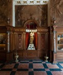 Questa piccola stanza che congiunge l’ingresso con la Biblioteca di Lodovico Pogliaghi è anch’essa caratterizzata dall’eclettismo e dalla grande eterogeneità dei materiali esposti: un forziere settecentesco, una Madonna lignea umbra di XIV secolo e un telamone padano di XII secolo.