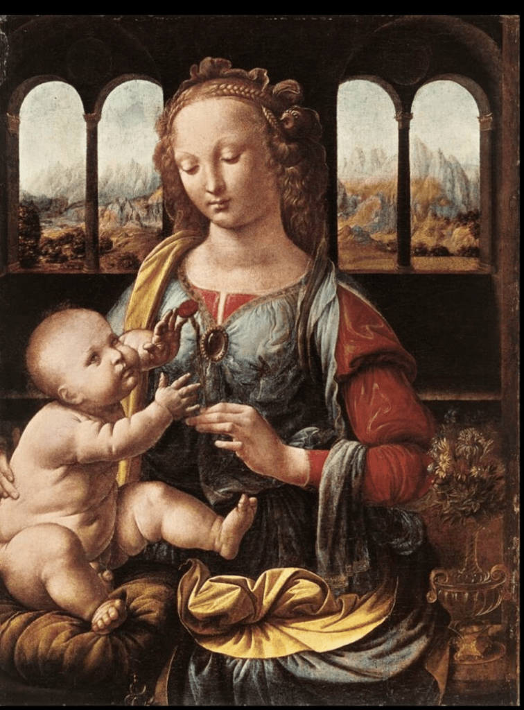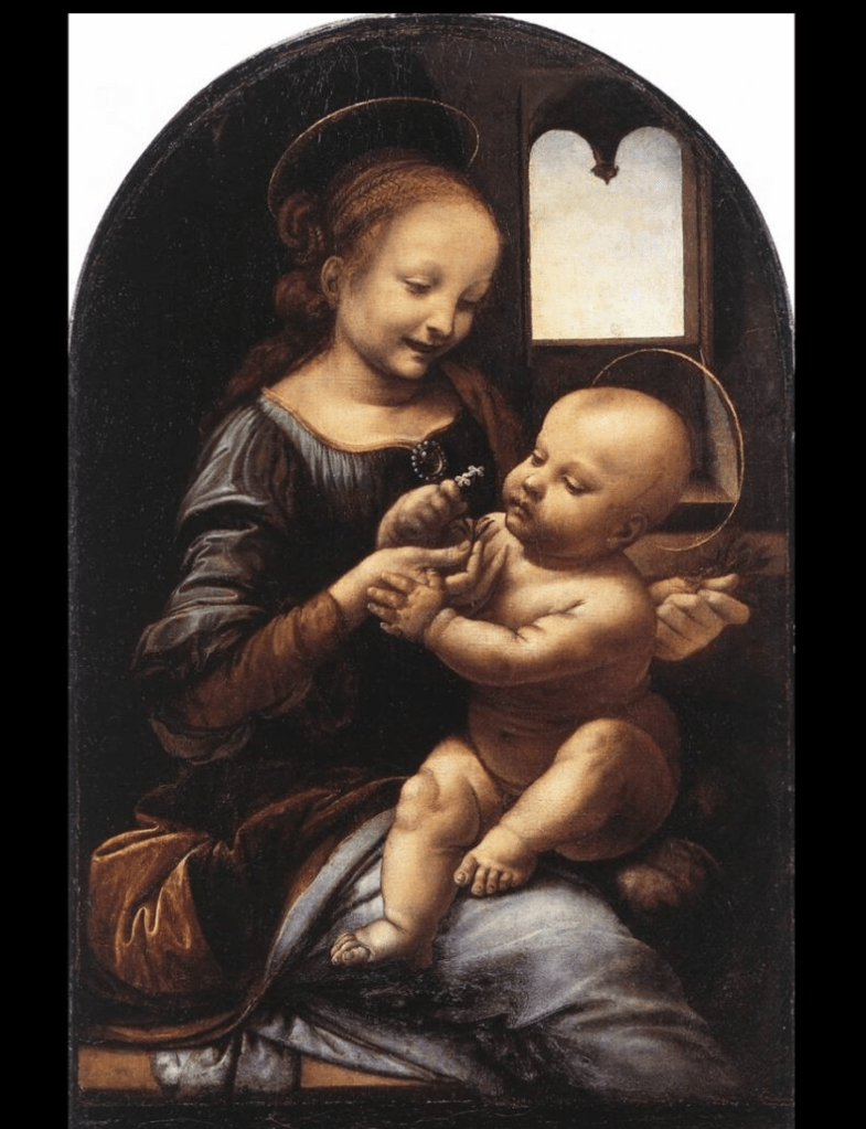 Foto 3 La Madonna Benois, olio su tavola poi trasferito su tela (48×31 cm), ascrivibile alla produzione di Leonardo da Vinci nel periodo 1478-1482, costituisce oggi un’importante opera conservata presso il Museo Statale dell’Ermitage di San Pietroburgo.