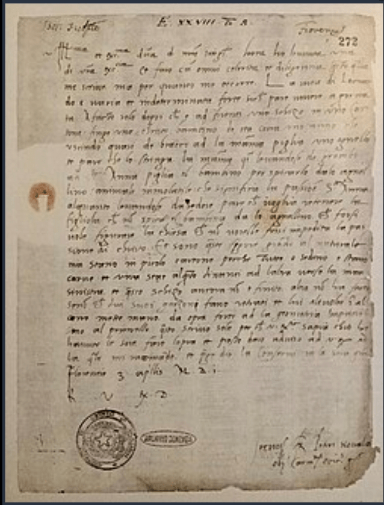 Foto 8 Pietro da Novellara, Lettera a Isabella d’Este, 3 aprile 1501, Archivio di Stato di Mantova, Archivio Gonzaga, E, XXVIII, 3. b. 1103, C. 272.