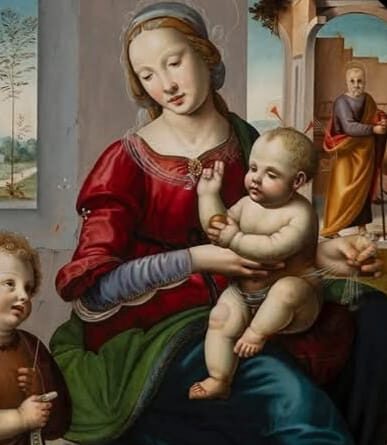 L’arte del Ghirlandaio, si caratterizza per la fusione della dolcezza dei volti di Raffaello con il rigore anatomico e stilistico di Leonardo, dei richiami del padre Domenico e del suo maestro Fra Bartolomeo, evocato chiaramente in questo dipinto. L’individuazione di questo pregevole tondo, contribuisce ad arricchire il mosaico della fase giovanile di Ridolfo del Ghirlandaio e ad approfondire la comprensione delle prassi operative nella sua bottega, dove l’impiego di cartoni permetteva la modulazione delle proporzioni delle figure a partire da modelli permeati dal suo stile equilibrato e armonico nella Firenze del primo Cinquecento. Questo porta a presupporre che entrambi i dipinti, quello di Dublino e questo in esame di collezione privata, possano essere opere del Ghirlandaio e della sua bottega. L’aderenza stilistica di Ridolfo ai canoni quattrocenteschi, pur garantendo coerenza a una produzione artistica copiosa, ha ostacolato, nel panorama critico del Novecento, una sua piena rivalutazione. Questo nonostante l’efficienza della sua bottega e il prestigio delle commissioni ricevute da esponenti dell’aristocrazia e del clero, suggerendo oggi, la necessità di una più approfondita analisi della sua opera e della sua preziosa maestria. La dolcezza e la raffinatezza dei dettagli suggeriscono, come già evidenziato da Falcioni, inequivocabilmente l’attribuzione del dipinto a Ridolfo del Ghirlandaio.