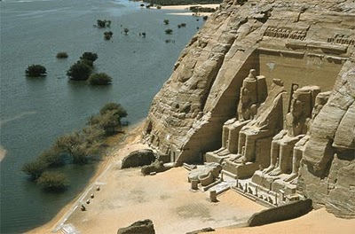 Situato sulla riva occidentale del Nilo, il tempio di Abu Simbel è di enormi dimensioni: 30m di facciata, 63m di profondità, 20m di altezza per le statua esterne e 10m per quelle interne. Il resto dell’estensione del tempio, che ne caratterizza l’originalità, è stato ricavato dentro la montagna. Originariamente l’ingresso al tempio avveniva dal Nilo, mentre oggi, a causa della costruzione della diga di Assuan, esso è stato smontato e ricostruito fedelmente in una zona più interna e sicura. Abu Simbel fu realizzato da Ramses II tra il 1290 e il 1224 a.C. per mostrare ai Nubiani la sua potenza. Le quattro statue dominanti raffigurano Ramses II ai cui piedi vi sono la moglie Nefertari Meretenmut e altri membri della famiglia. Al di sotto, in una nicchia, vi sono delle statue al confronto minuscole, ma in realtà alte 2 metri, che raffigurano il dio Ra, le dea Maat e lo scettro User (User-Maat-Ra era il soprannome dello stesso Ramses II). All’interno del tempio nella cella, scolpiti nella roccia, sono raffigurati Ptah, Amon, lo stesso Ramses II e Ra. Il tempio fu costruito in modo tale che due volte l’anno, più precisamente il 21 febbraio ed il 21 ottobre (forse la data della nascita e dell’incoronazione di Ramses II), il sole sorgendo illumini le quattro statue della cella. Questa operazione era permessa dai 24 babbuini scolpiti sopra l’ingresso del tempio che “aiutavano” il sole ad entrare. Davanti all’ingresso del tempio vi è la cosiddetta “stele del matrimonio” che narra delle nozze tra Ramses II e la figlia del re ittita Hattusil al termine della famosa battaglia di Kadesh. All’interno del tempio, sulla parete di destra, vi è una dettagliata raffigurazione (9m x 17m) della lotta tra Egizi ed Ittiti con la rappresentazione di 1100 soldati. Sulla parete opposta, invece, ci sono i due inganni fatti a Ramses II durante la sua marcia verso Kadesh e che gli furono fatali. Con queste rappresentazioni Ramses II intende consolidare la sua regalità facendo credere che, dopo la sconfitta del suo esercito caduto in un’imboscata, lui da solo con l’aiuto di Ra avrebbe sconfitto gli Ittiti.